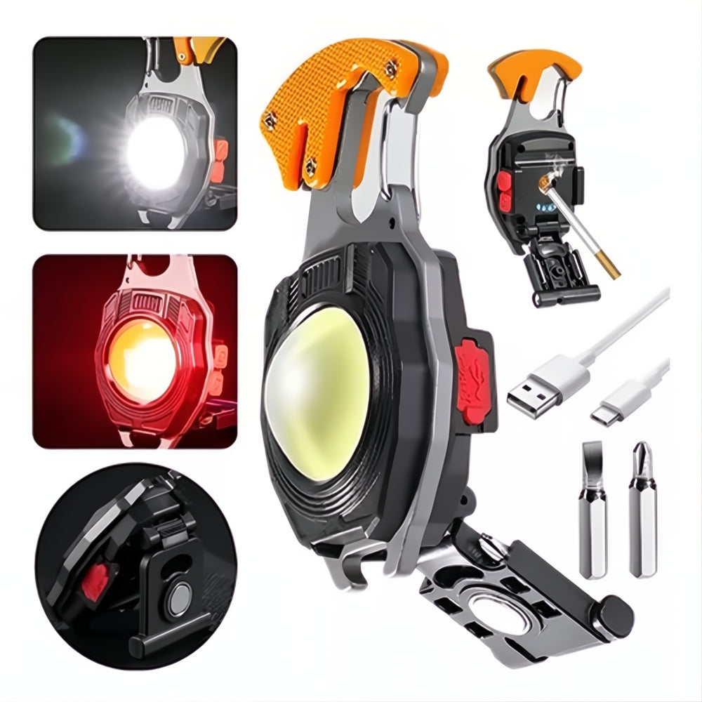 1.MULTI-FUNCIONAL MINI LLAVERO LINTERNA: Esta luz COB llavero está equipado con 2 destornilladores de estilo diferente y 1 encendedores, sino también llavero portátil, cortador de cuerda, abridor de botellas, llave inglesa, y el silbato de emergencia, ampliamente utilizado para la pesca, caminar y acampar, sacacorchos, mantenimiento de emergencia en carretera, Etc.